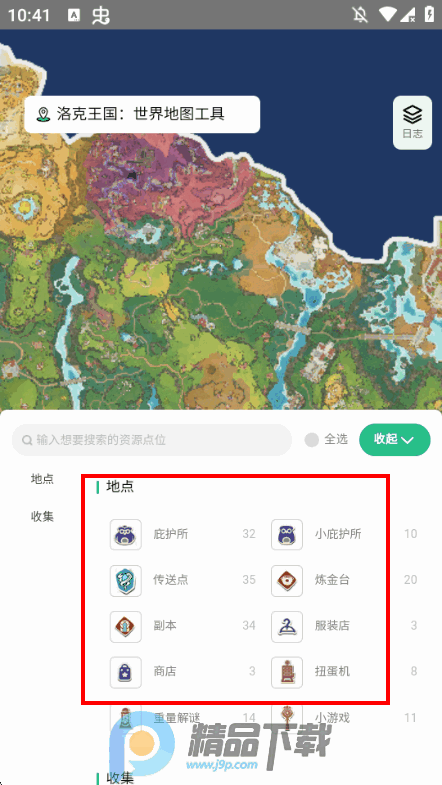 精准定位资源与宝箱:工具提供全地图资源点标注,包括宝箱、精灵刷新位置、任务NPC及隐藏道具等。玩家可通过关键词搜索(如“损坏的国王球”)或分类筛选快速定位目标,节省探索时间。