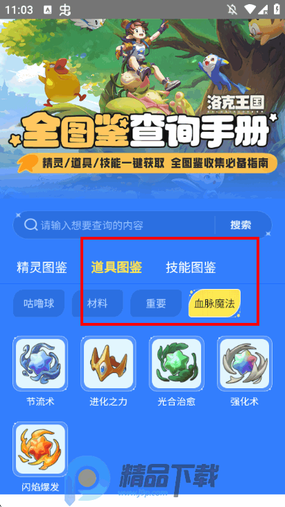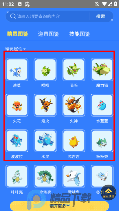 全精灵图鉴查询:收录游戏内所有精灵的详细数据,包括属性、技能、种族值、进化路线及捕捉地点,支持关键词搜索与分类筛选,方便玩家快速了解精灵信息。