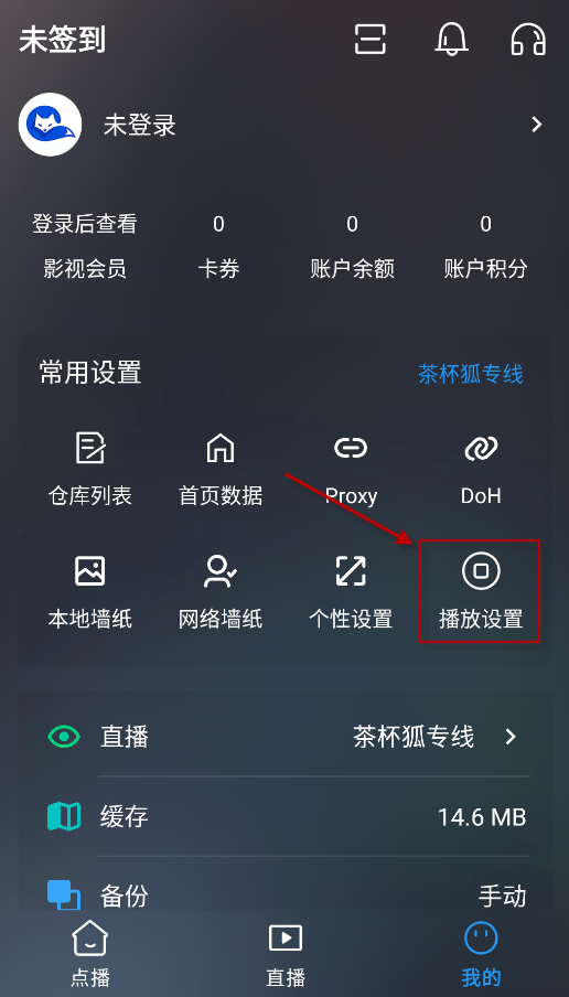 2、然后点击“播放设置”选项。