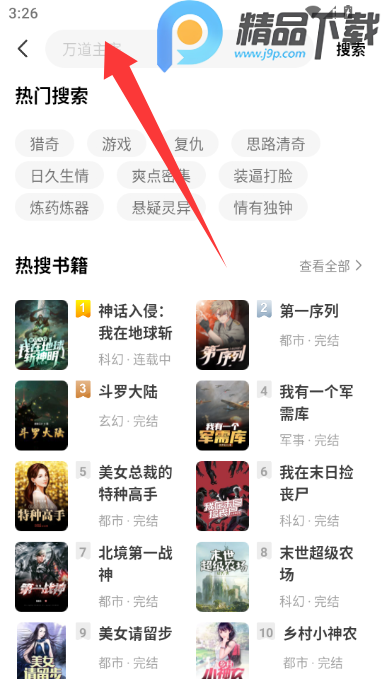 2、在搜索框中可以搜索想要的小说