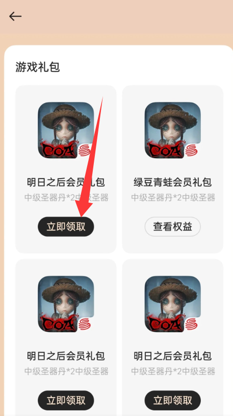 3、领取会员专属游戏礼包