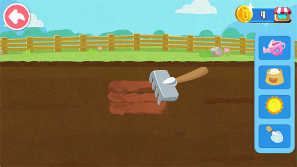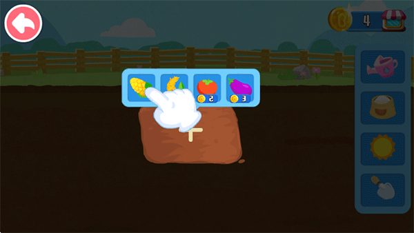 1、进入奇妙农场宝宝巴士游戏后,点击商店帮你的小伙伴购买所需的商品,然后进入农场种植粮食;