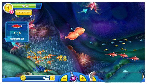 比目鱼又叫鲽鱼,栖息在浅海的沙质海底,捕食小鱼虾。它们特别适于在海床上的底栖生活。因为这种特性,可以用5号激光或者是8号散弹进行抓捕。5号激光适合攻击单一大型鱼,而在游戏中比目鱼的尺寸不算小,可以等鱼游近后对准发射。而8号散弹主要就是靠威力,它比10号炮弹更有巧劲,对于这种比较灵活的鱼也有不错的效果。