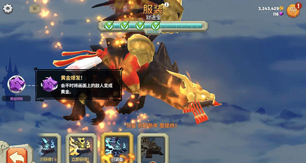 2、进入每一个关卡前,会出现1个随机增益效果(花费宝石)和2个固定增益效果(花费金币),驭龙者们可选择其中任意一个开始挑战。