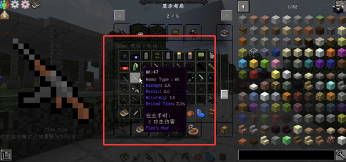 1、在创造模式菜单中可以直接拿出模组内武器
