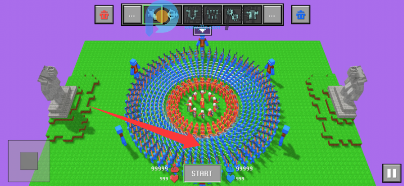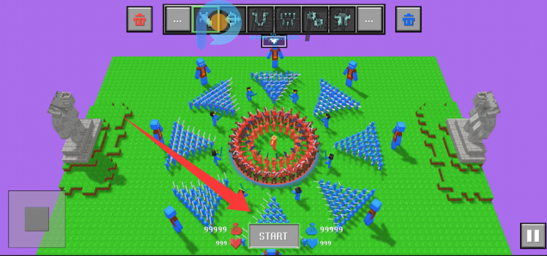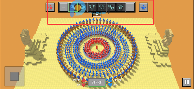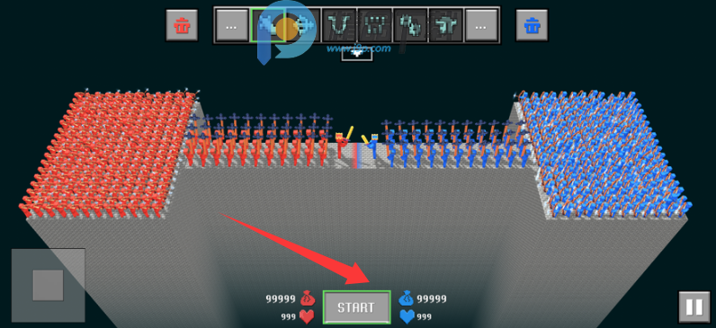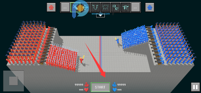 1、布置好士兵之后点击START开始模拟战斗