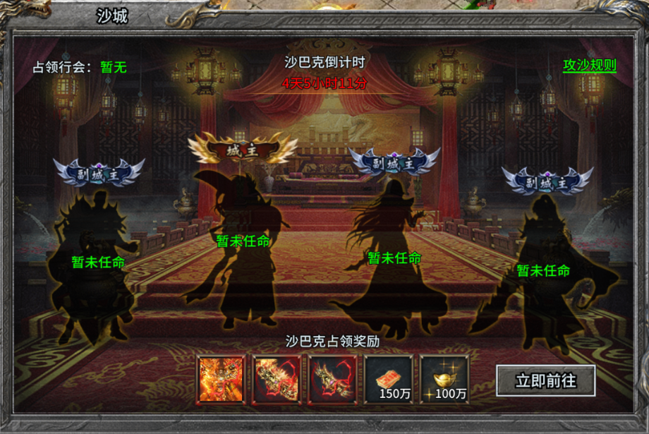 占领皇宫的行会还将获得额外的行会积分,活动结束时,行会积分最高的行会将荣膺沙城霸主称号。